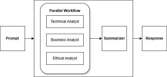 Let us explore this further using an example. In this example, we will create three analyst agents that analyze a topic across three facets: technical, business, and ethical.